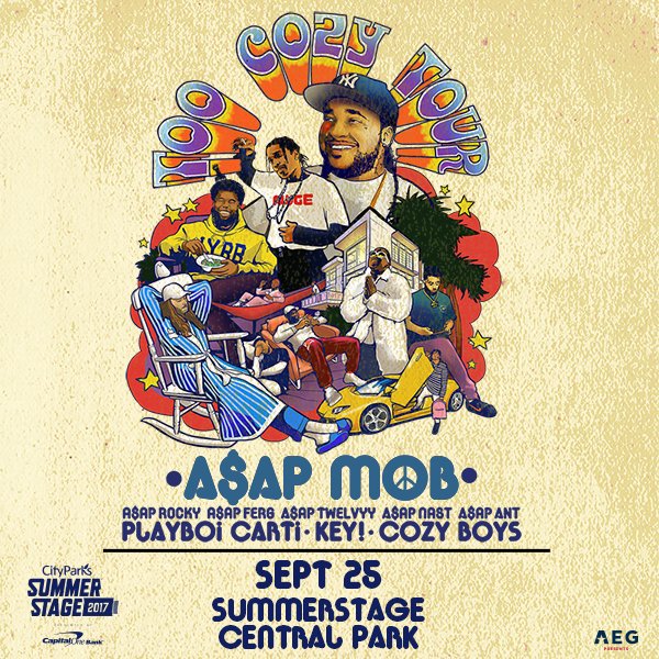 A$AP Mob, the NYC rap collective helmed by A$AP Rocky, will be performing in New York City on Monday Sep 25, 2017.